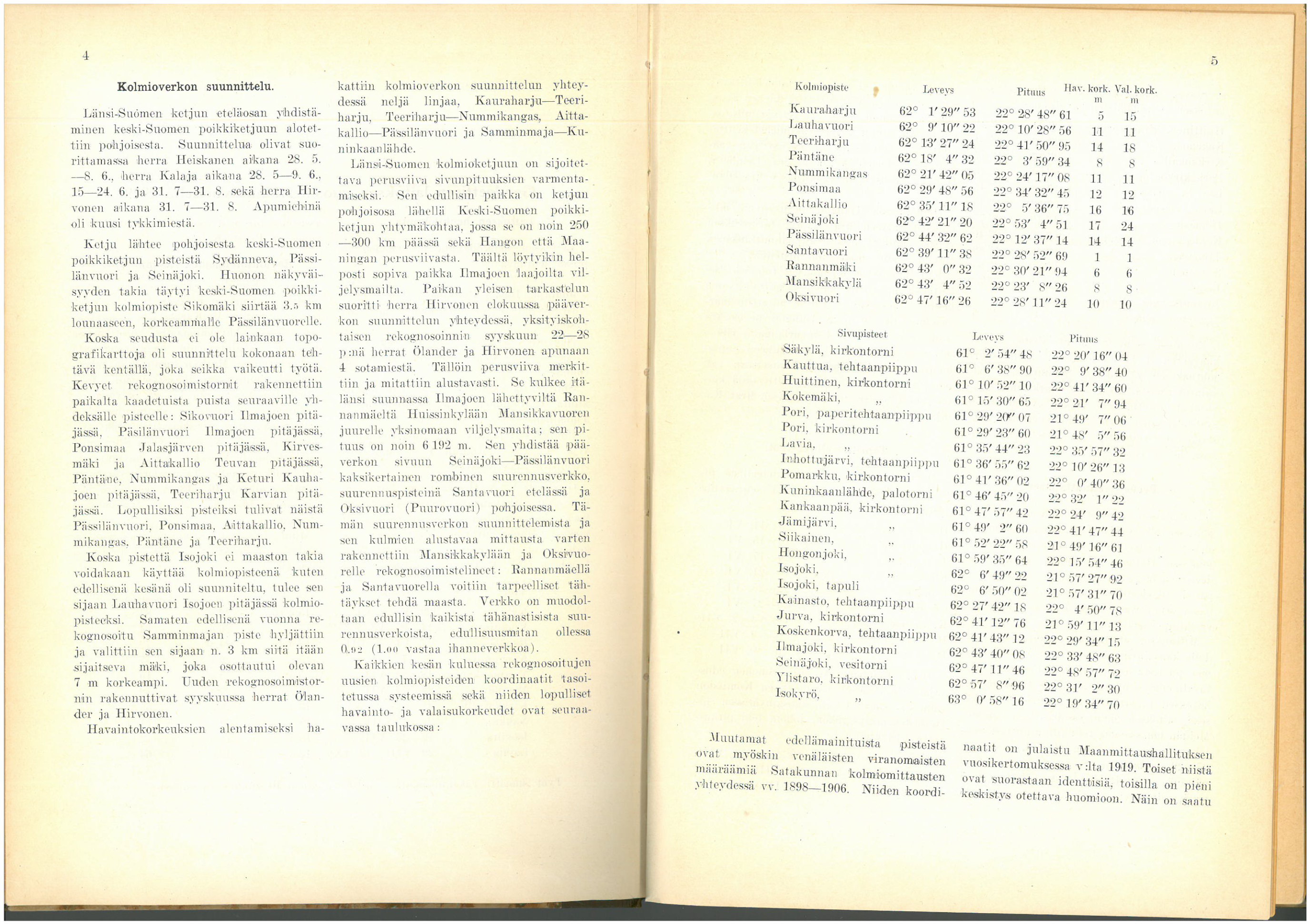 Geodeettisen laitoksen vuosikertomus 1929, sivut 4-5, jossa puhutaan Ilmajoen suunnitelluista mittauksista.