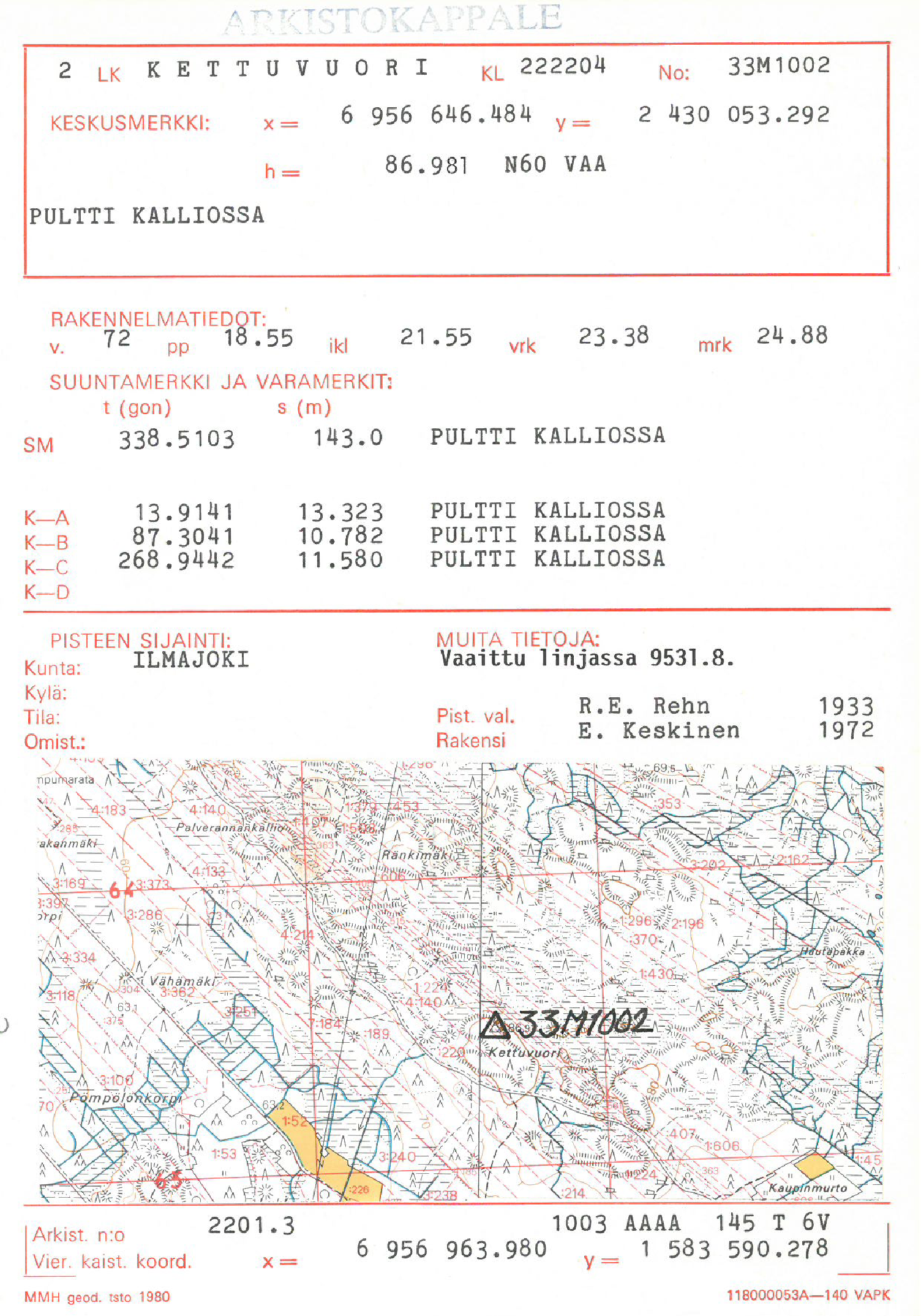 Kettuvuorelle tehtiin ensimmäinen torni jo vuonna 1933, Maanmittauslaitoksen toimesta.