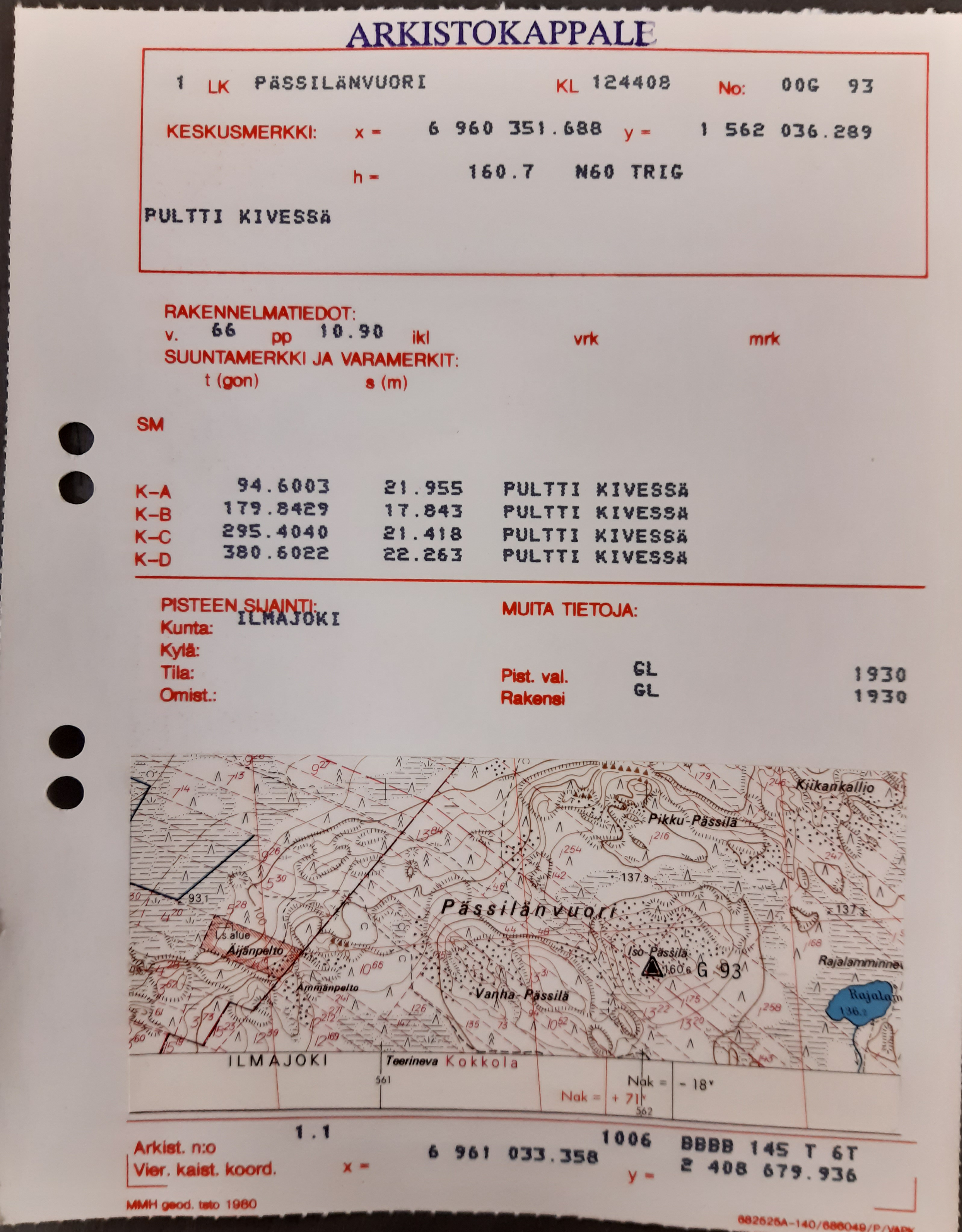 Otteita Geodeettisen laitoksen kolmiopistekantakirjasta :