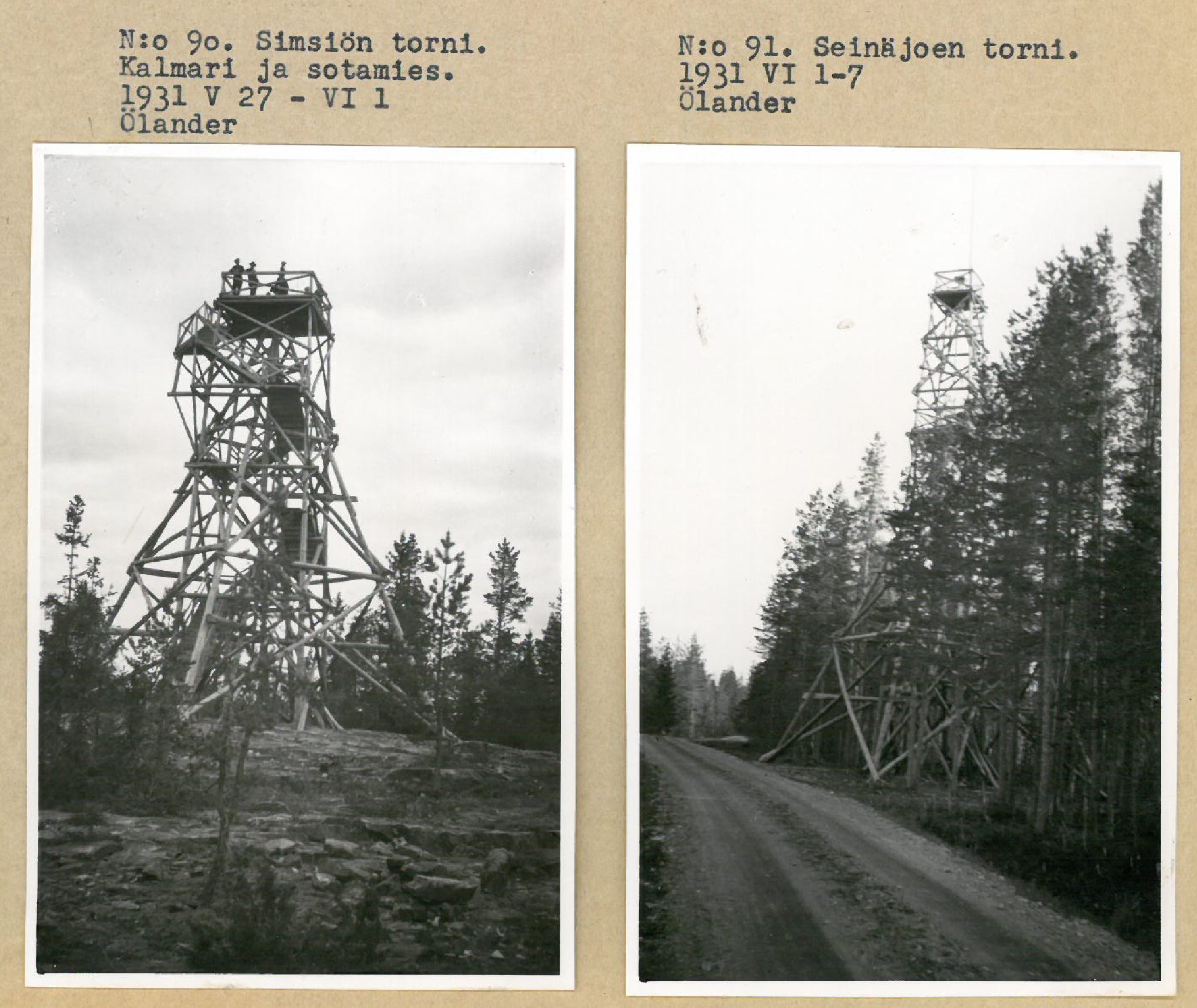 Geodeettisen laitoksen arkistosta löytyy myös pari aiheeseen löyhästi liittyvää tornikuvaa.